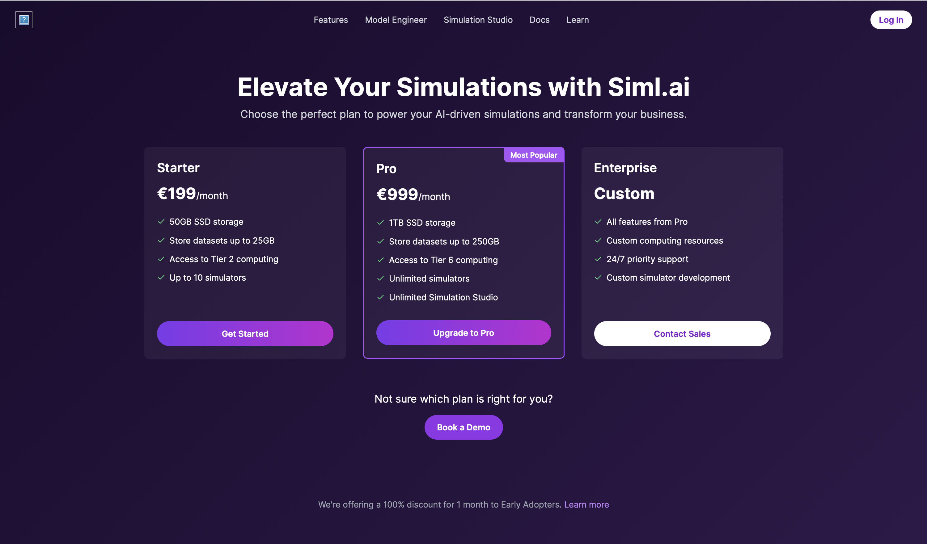 We offer a variety of plans to suit your needs. Take advantage of the discount opportunity for the Pro plan as an early adopter (only 20 available).